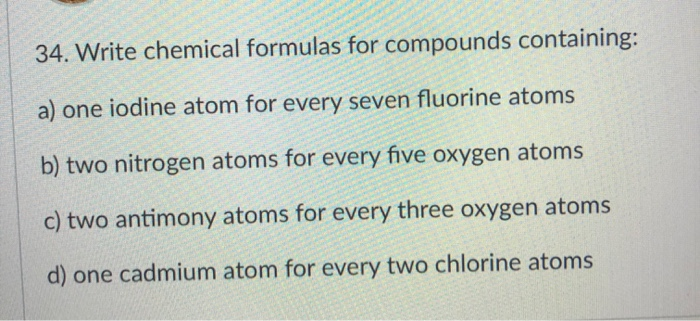 Solved 34 Write Chemical Formulas For Compounds Containing Chegg Com